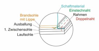 und Zwischensohle vernäht.